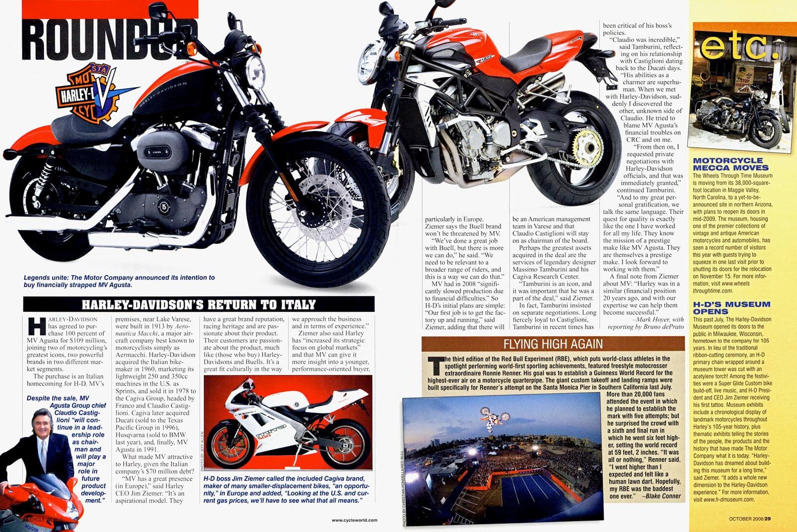 MV Agusta and Harley Davidson. A match made in hell, perhaps, but Harley announced the agreement to buy the MV Agusta Group in 2008 for $109m (about €70m or £50m).