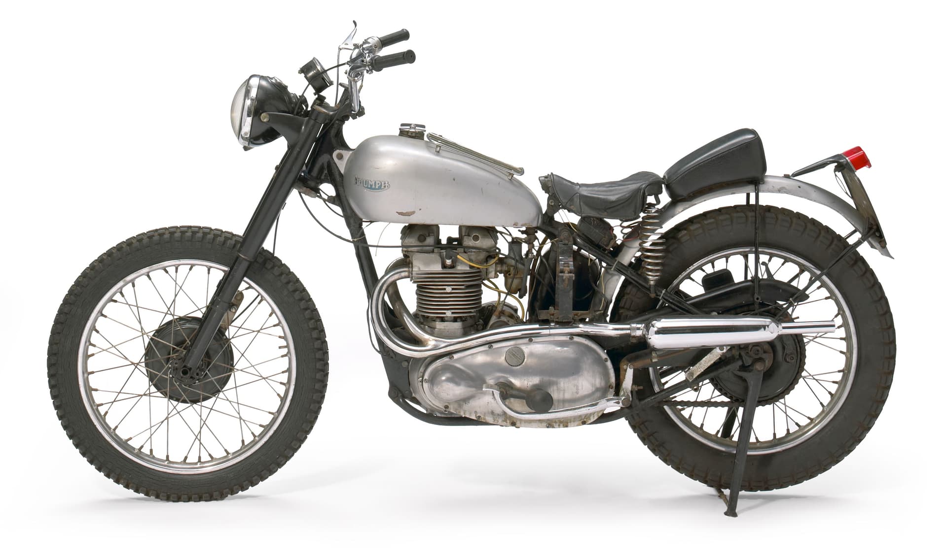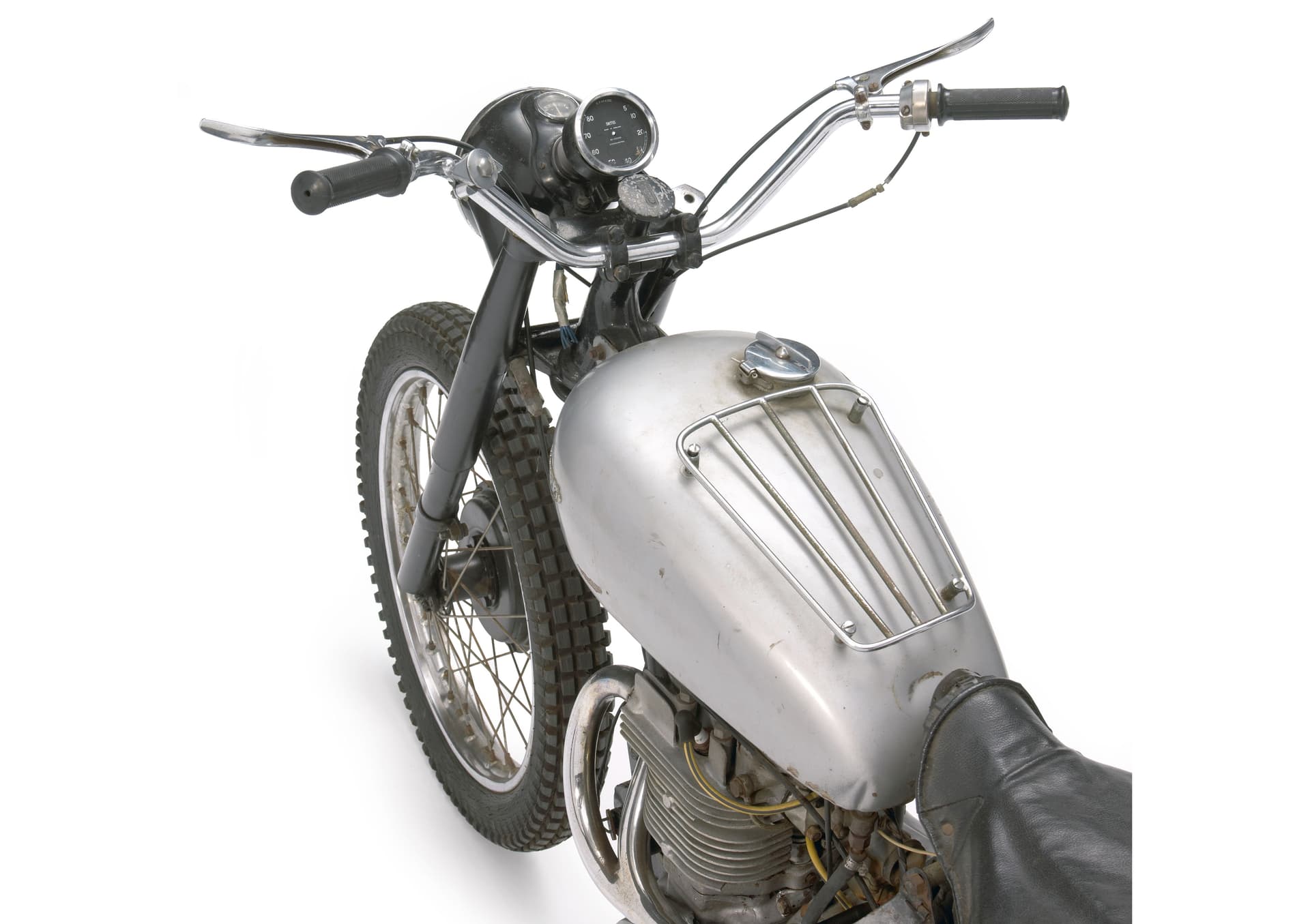 The bike originally came from Bud Ekins, who took off the front mudguard, replaced the bars and painted the tank silver.