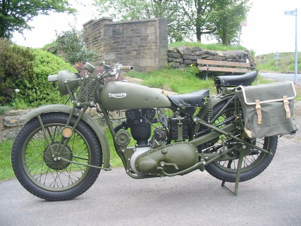Production had started on a batch of 50 lightweight (247lb) 350cc twins for the Army when the bombs dropped. Afterwards, Triumph set up production in temporary works in Warwick before moving to their iconic factory in Meriden.