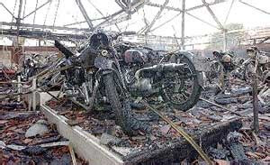 Staff and people attending a conference helped to save more than 300 historic motorcycles but many of the museum’s rarest and irreplaceable exhibits were destroyed with the loss of 380 motorcycles. The cost of the fire was estimated at over £14 million.