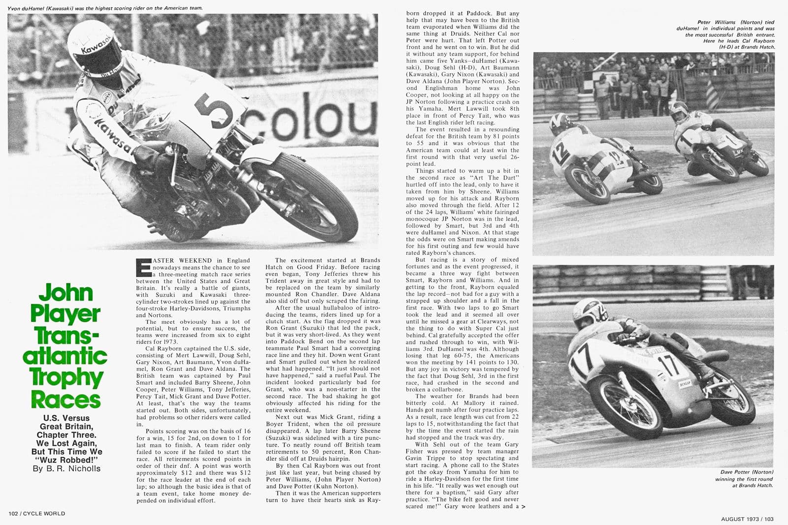 Williams was the standout performer for the British team at the 1973 Transatlantic Trophy match races aboard the John Player Norton.
