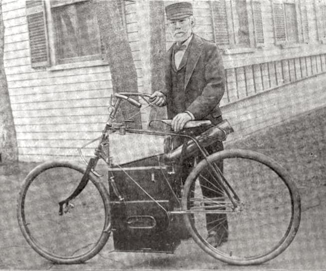 The ‘motor cycle’ would run for 7 miles before it needed refuelling and could get up to 40mph.