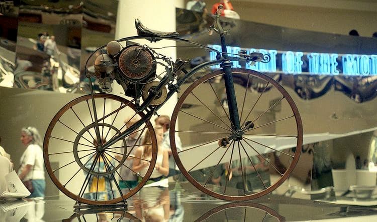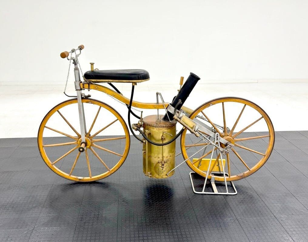 The Daimler Reitwagen is usually claimed to be the first motorcycle because it had an internal combustion engine that begat all others (apart from the electric ones). Steam motorcycles were a dead-end, technologically, so Roper’s velocipede, though an earlier machine, isn’t considered to be a motorcycle. Of course, you could argue that the Flying Scotsman isn’t a train with that logic.