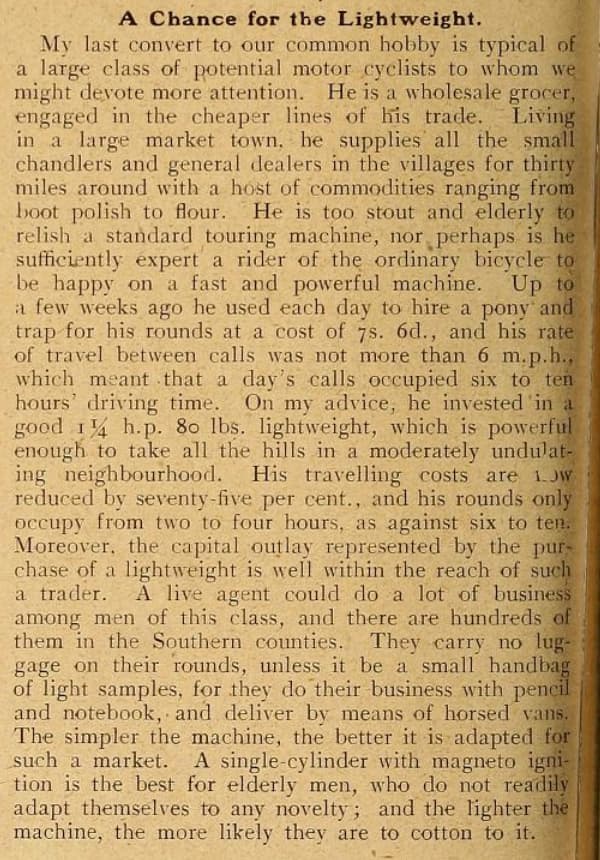 In a time when the telephone was still a novelty and before the company car was a twinkle in the eye of a wannabe fleet manager (1910 in this case), there was little choice for the honest wholesale grocer but to travel around his customers taking their orders forr subsequent delivery.