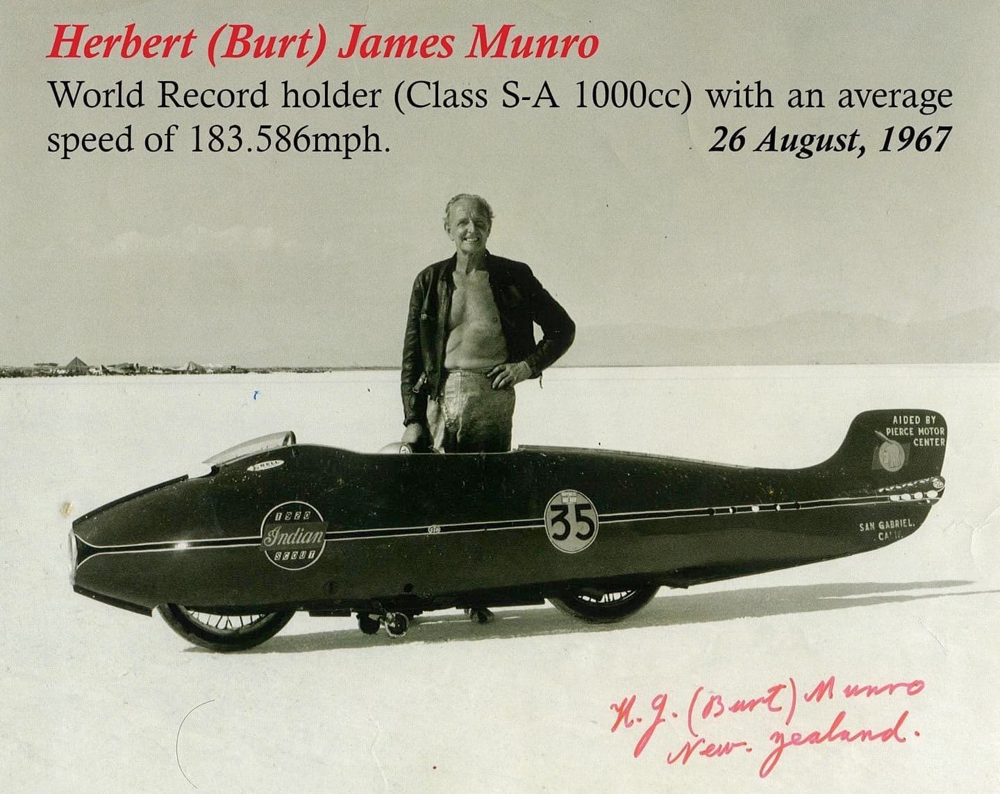 Burt Munro was born in New Zealand in 1899. He bought his first motorcycle, a 600cc Indian Scout, when he was 20 years old and immediately began workiing to improve its top speed of around 60 mph, taking it up to 90 mph.