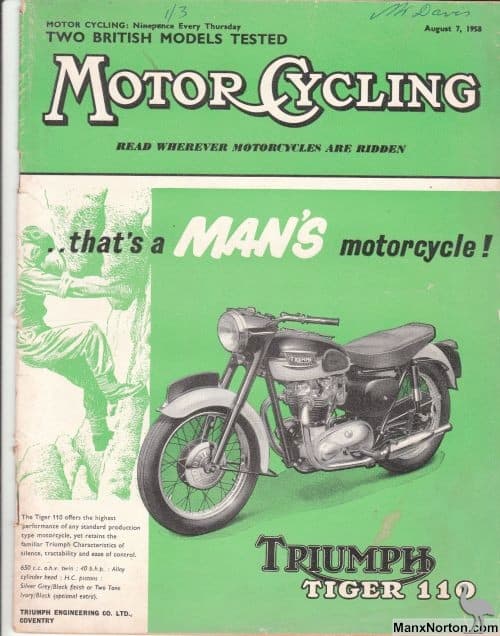 Covers of Motor Cycling tended to be green while The Motor Cycle were predominantly blue, hence the colloquial names “The Green 'un” and 'The Blue 'un".