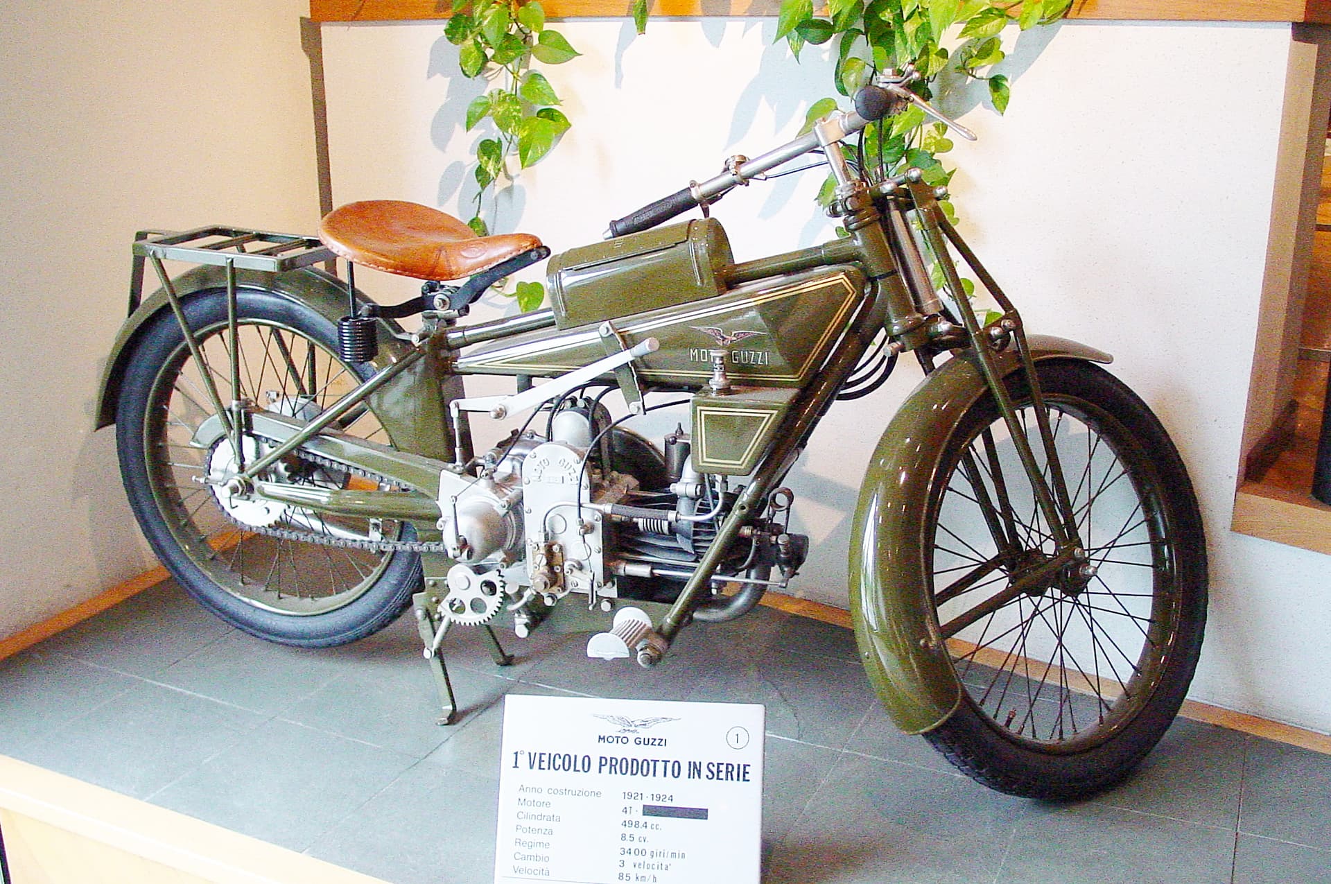 The firm was established in 1921 in Mandello del Lario by Lake Como in Lombardy by Carlo Guzzi and Giorgio Parodi, who had become friends during the first war due in large part to their mutual passions of aviation and motorcycling. Parodi was a great pilot, and flew in WWI, the Ethiopian conflict, and WWII. The business was to have included a third partner, Giovanni Ravelli, also a keen competition motorcyclist and aviator. Ravelli was killed in an aviation incident in 1919, and the Moto Guzzi logo is Parodi and Guzzi’s tribute to their friend.