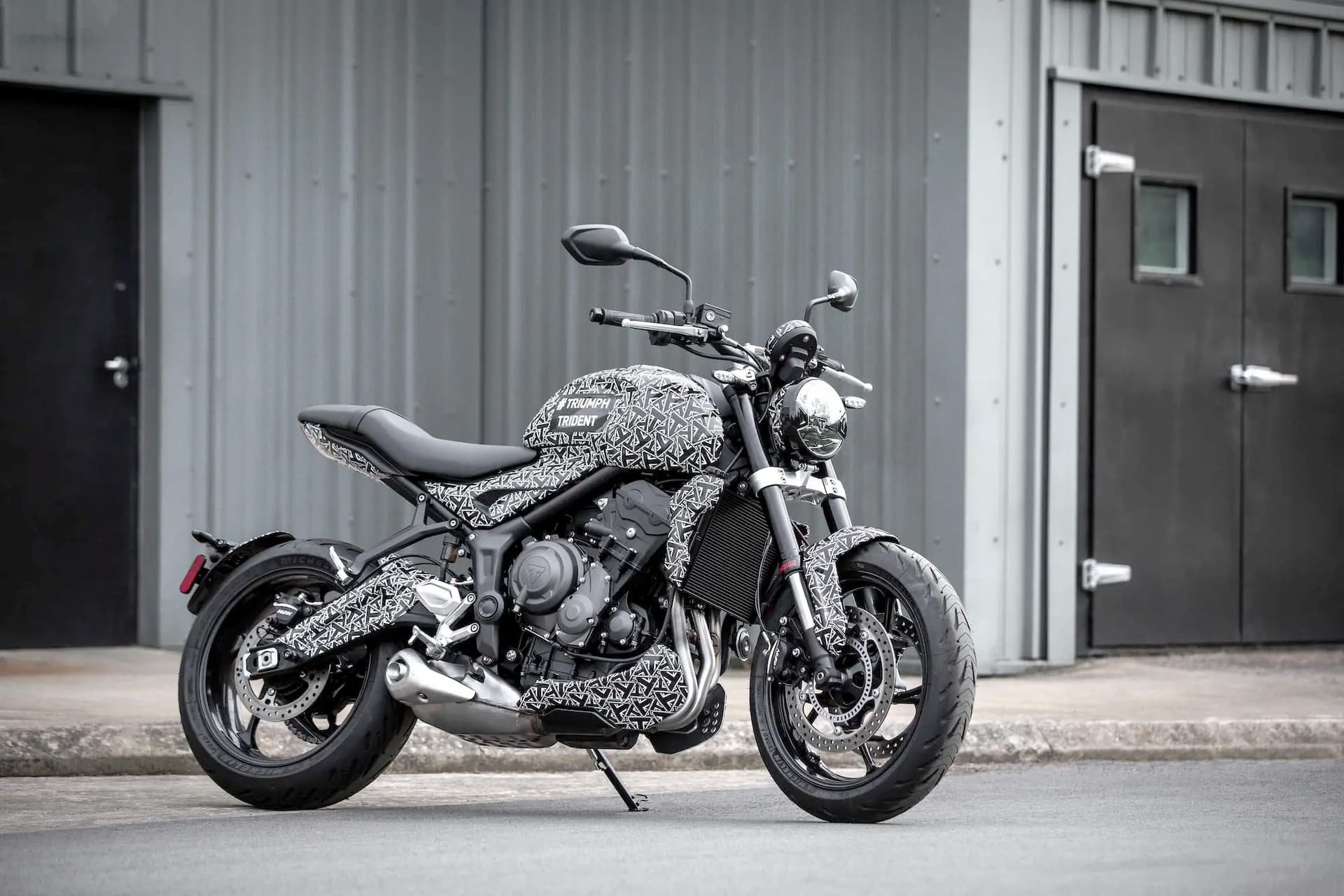 Following a four-year development programme, the Triumph Trident prototype was revealed at the London Design Museum on 25 August 2020. To disguise the final form, the prototype was painted all white except for the engine.
