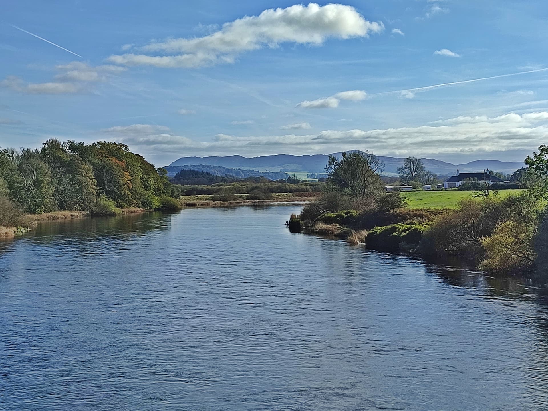 To begin with, I headed east as far as Dumfries, but then decided I’d rather take one of my favourite runs on Galloway roads, so I turned round and rode back towards, Castle Douglas on the old military road. Crossing the A75, I cut across to Townhead of Greenlaw and took the turning for Laurieston. I stopped at Glenlochar and ate my lunch sitting on the parapet of the bridge over the River Dee.