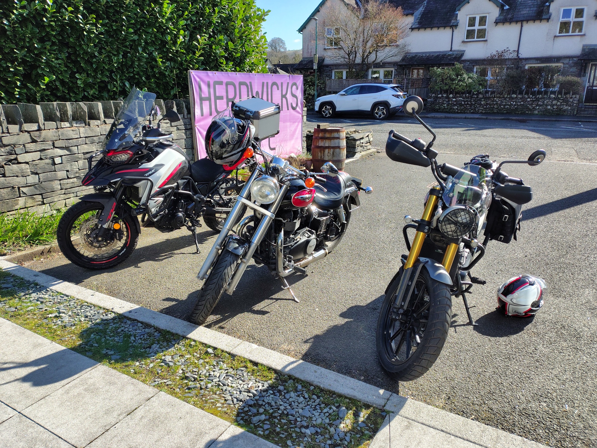 Ride to Herdwicks at Coniston for a brew with an ex-workmate on his Benelli and his mate on a Speed master. God that was loud!
