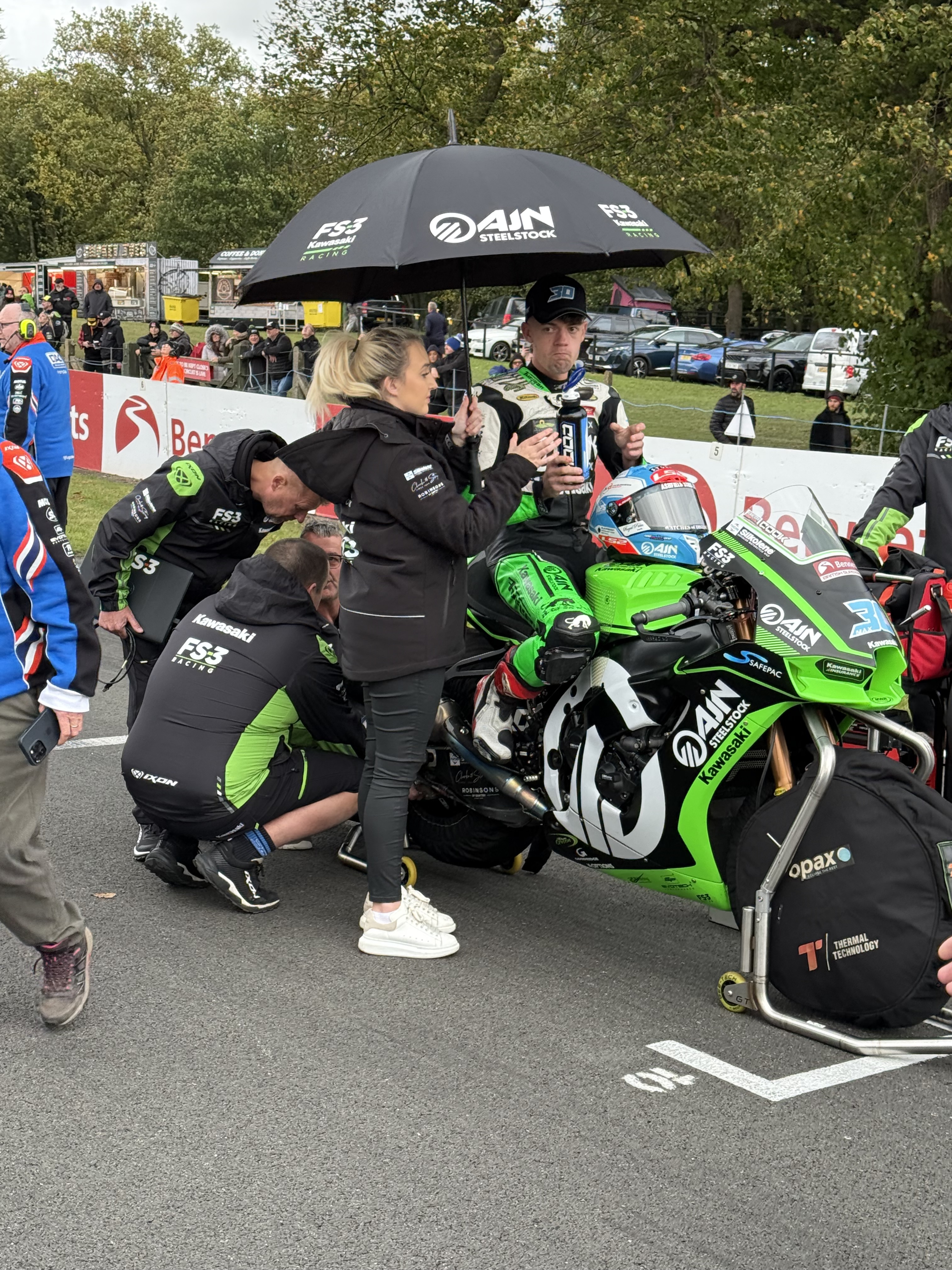 Got asked to present Bradley Ray with the watch he gets for securing pole position. A brief look of confusion crossed his face that I put down to him not knowing who the hell I am. Afterwards it occurred to me I was wearing a Peter Hickman jacket. ![]()
