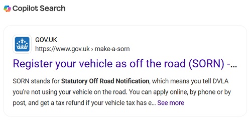 SORN applied, and a refund on remaining tax will be on it’s way!