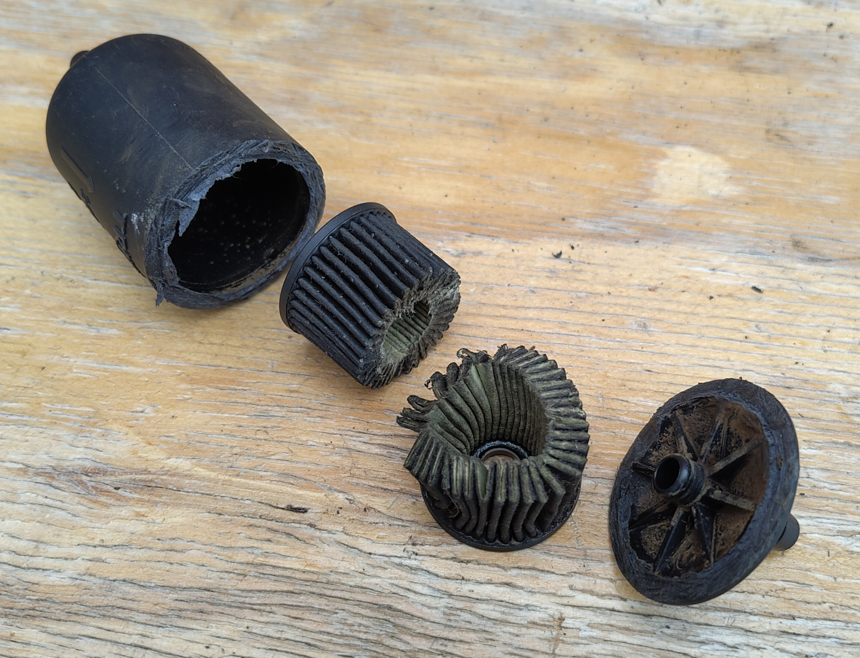 I hadn’t done mine since it’s first dealer service, so when I finally got around to replacing it I thought I’d check inside and see what a 55.000 mile old filter looks like…