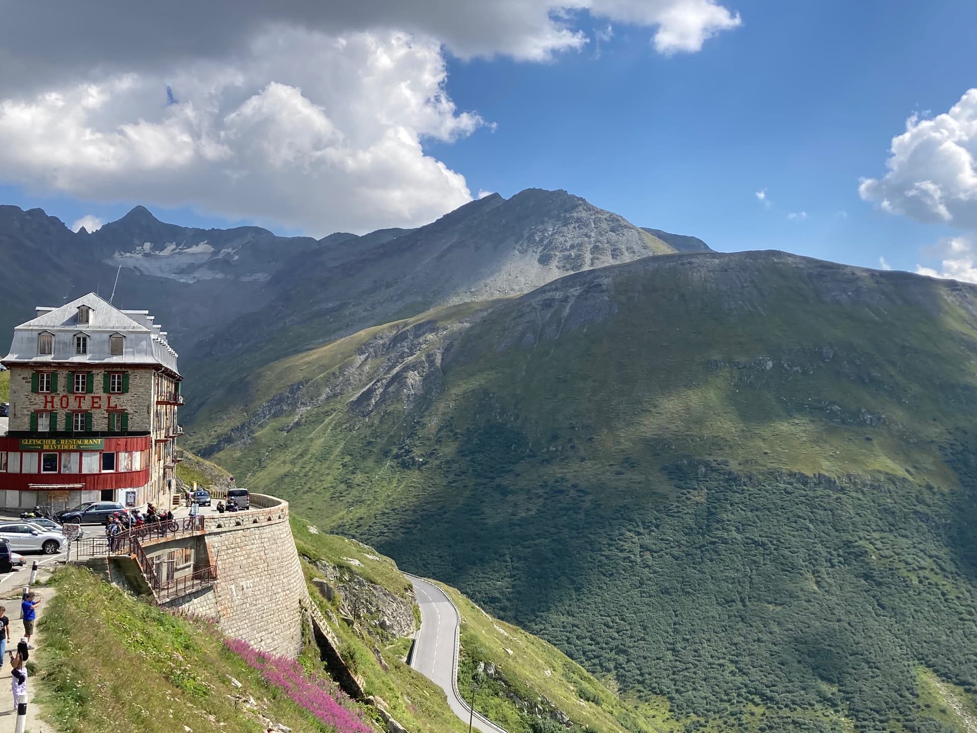 In the afternoon, back on the bike to climb the Furka pass, made famous by Goldfinger 007. It’s to me the nicest one, but the way down to Andermatt, the road is not for people like me subject to vertigo. No security, anyone can jump down in a second !!