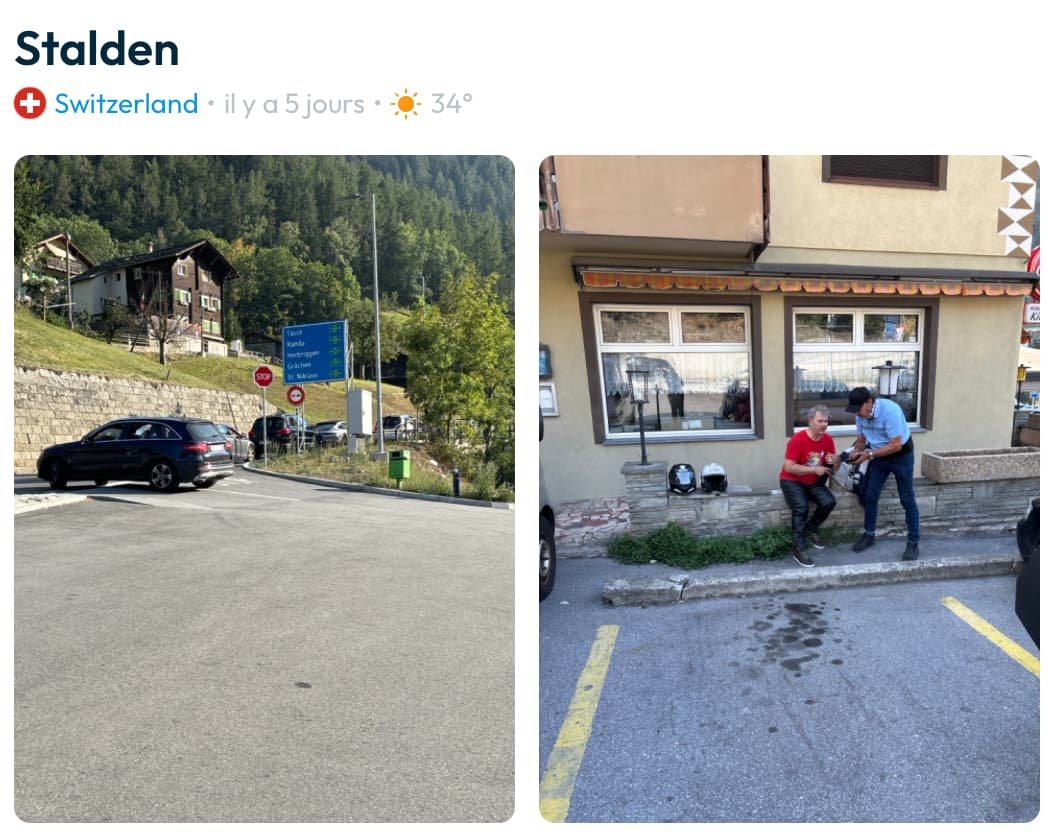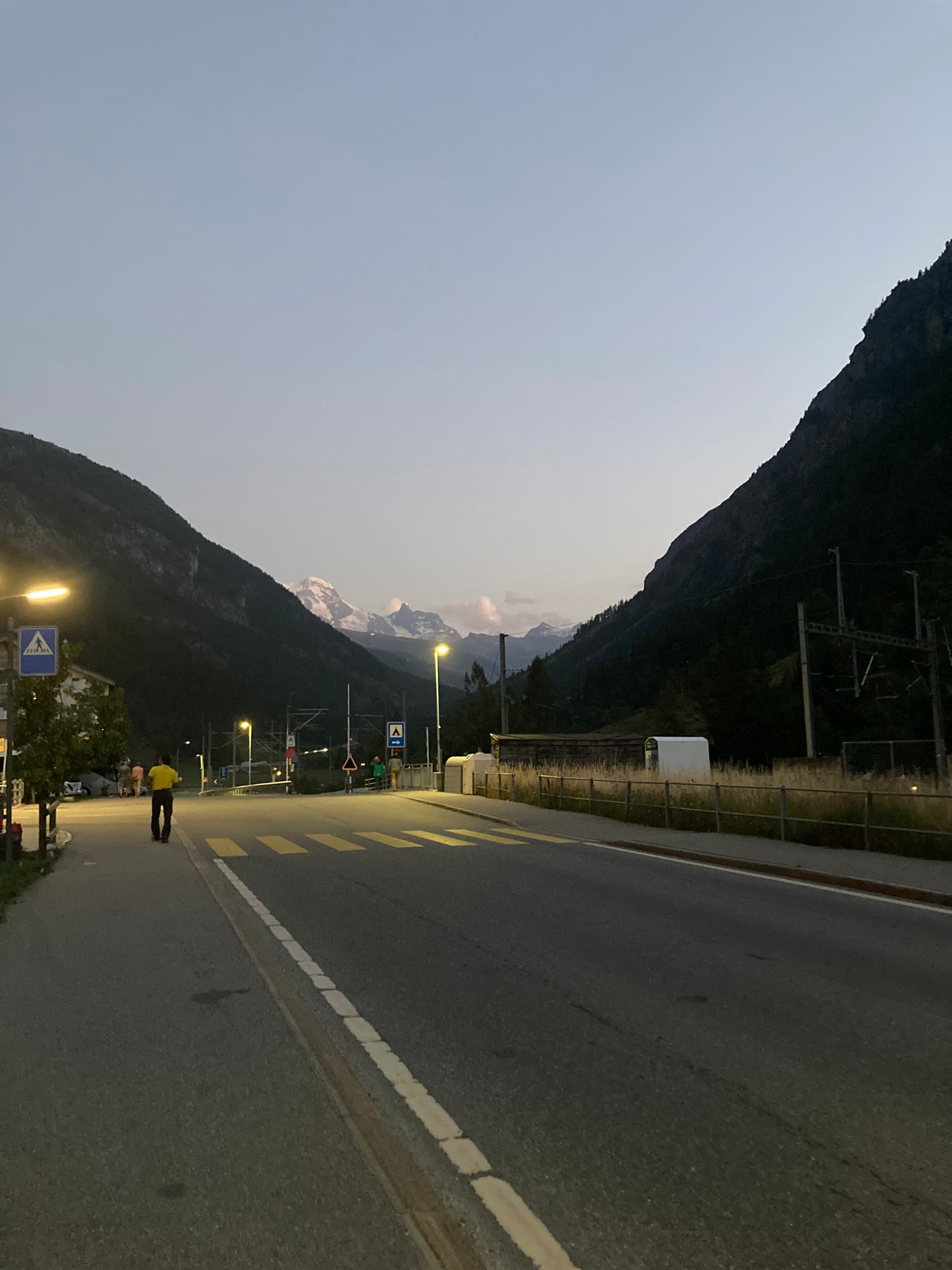 First day through Megeve, Chamonix, Martigny (CH), Cran Montana, 6 hours on the bike, then at 18 km from Tasch (near Zermatt) we were stopped. A car fire in the last tunnel.. Stayed there 40 minutes, chatting with locals with my reminiscence of German language skills.