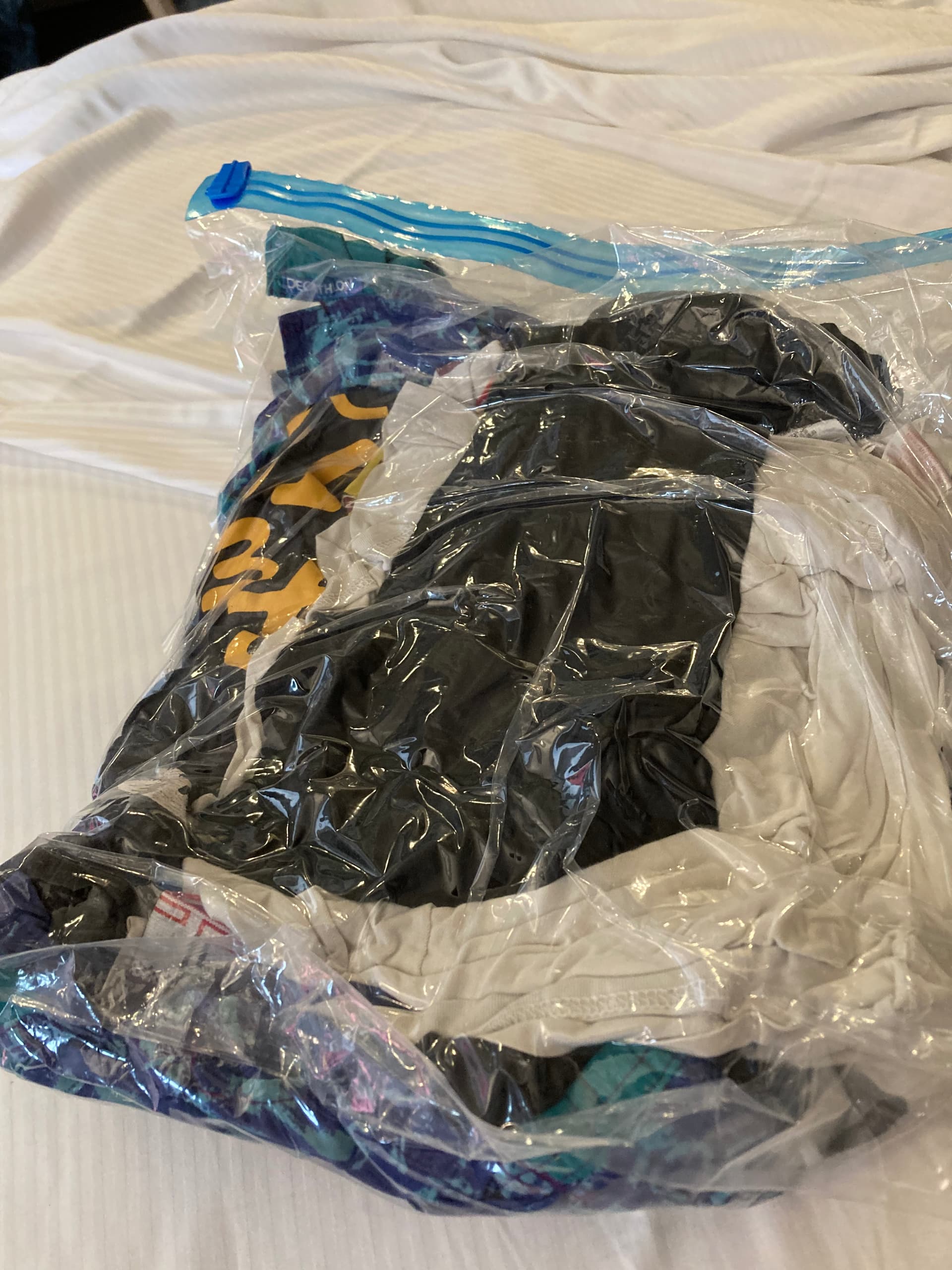 And to finish, here is the tip of the day (some of you should already know). Advised by my American neighbor who travels a lot, we bough on amazon compression bags (the simple version, ni vacuum pump) and it’s a real game changer if you travel with your lady ![]()