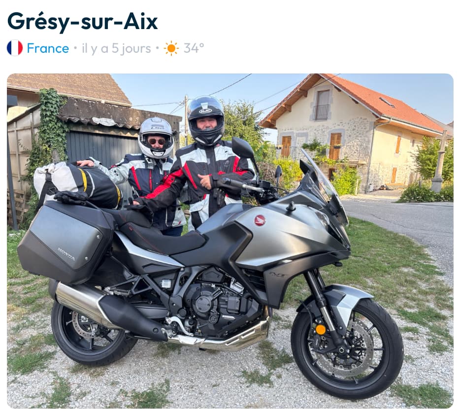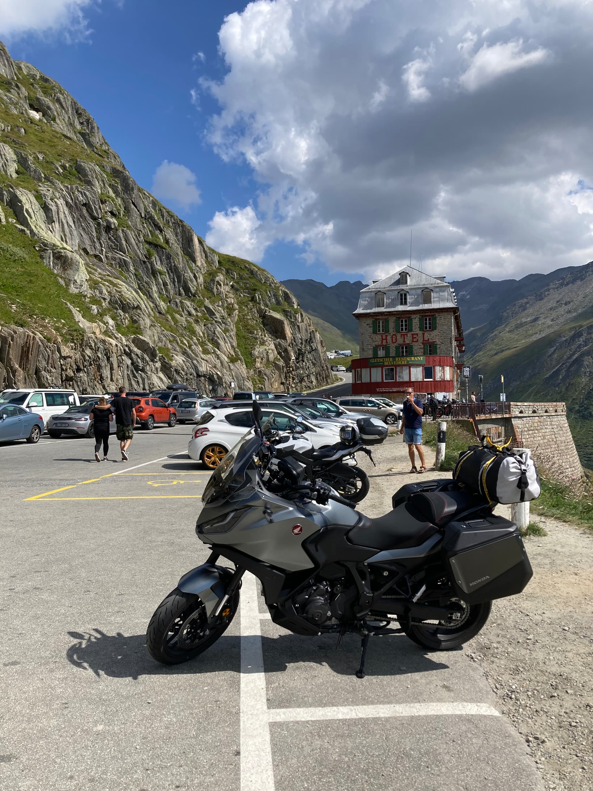 380 km, under 34°, climbing the Simplon pass (very nice), and then contour Leman lake by the north (Montreux, Lausanne, Geneve) and a bit of motorway to test the NT1100 in all conditions.