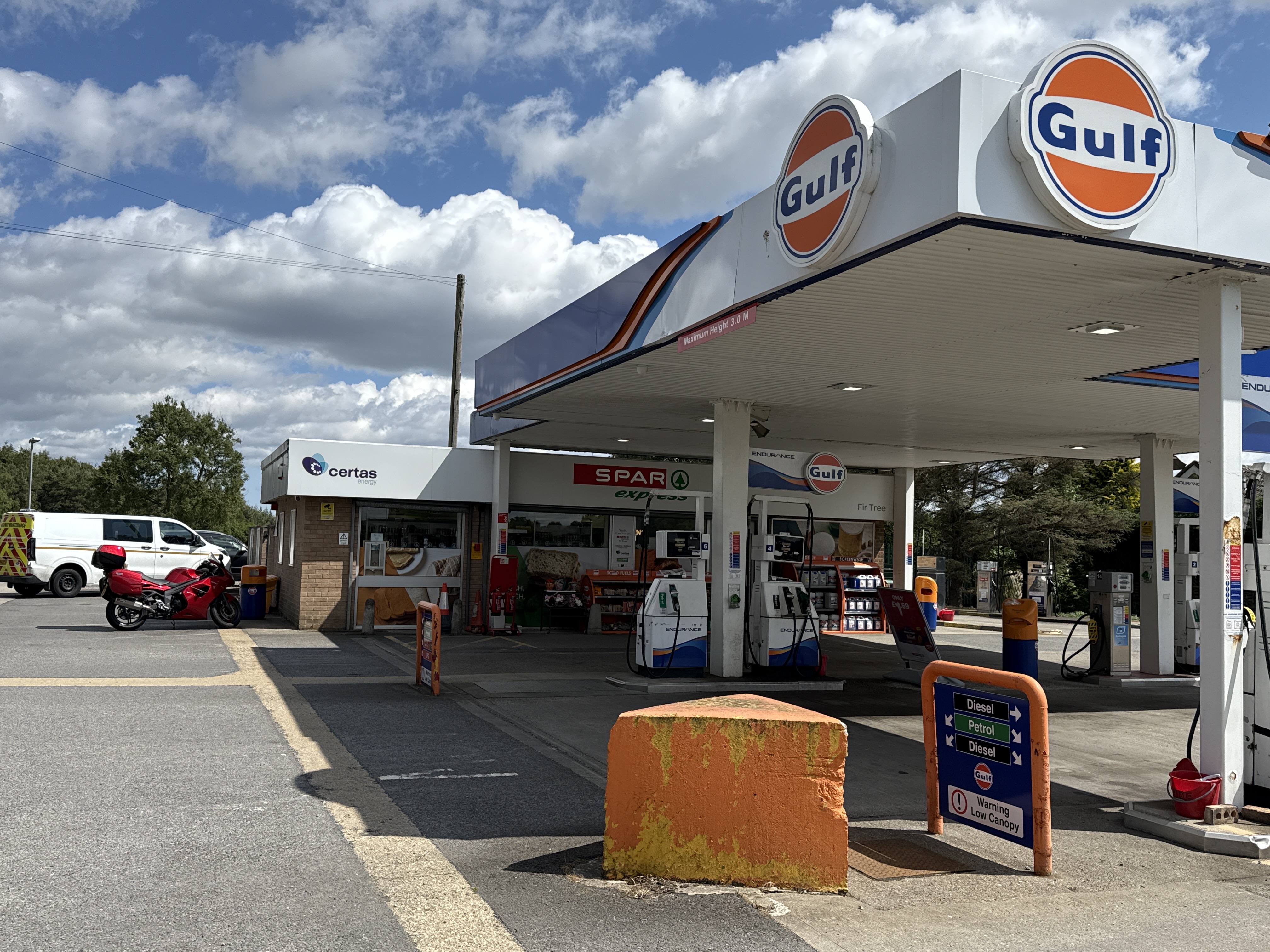 Got separated on the A1 so waiting for ‘er on the Scrambler to catch me up. Stopped at Fir Tree for petrol and garage machine coffee, which I’m sure is some sort of punishment for still using petrol.