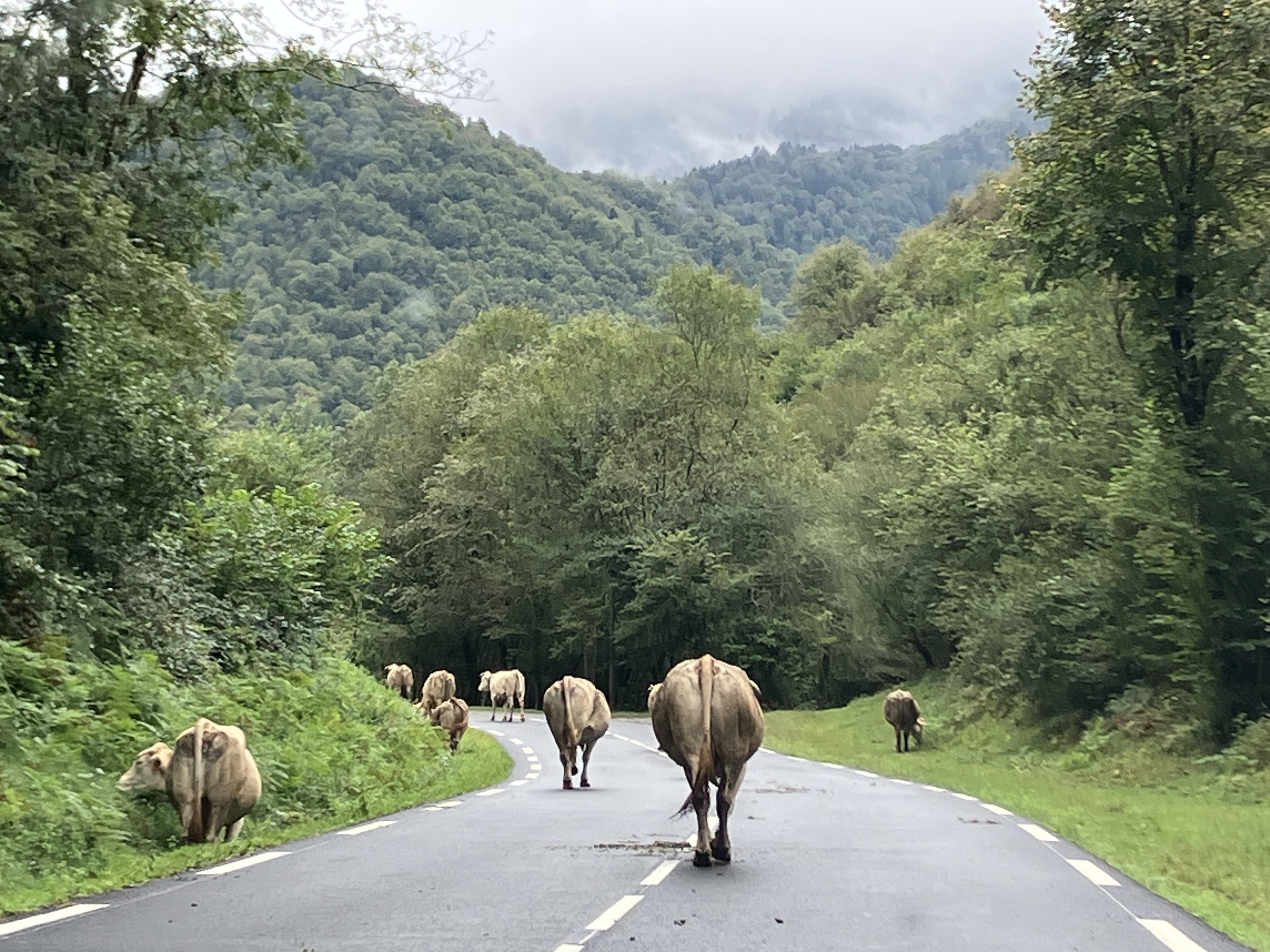 Lunch in San Sebastián. Then go to our place via Pau and visit the old race circuit in Pau en route. This looks like better roads = quicker access to the vino.