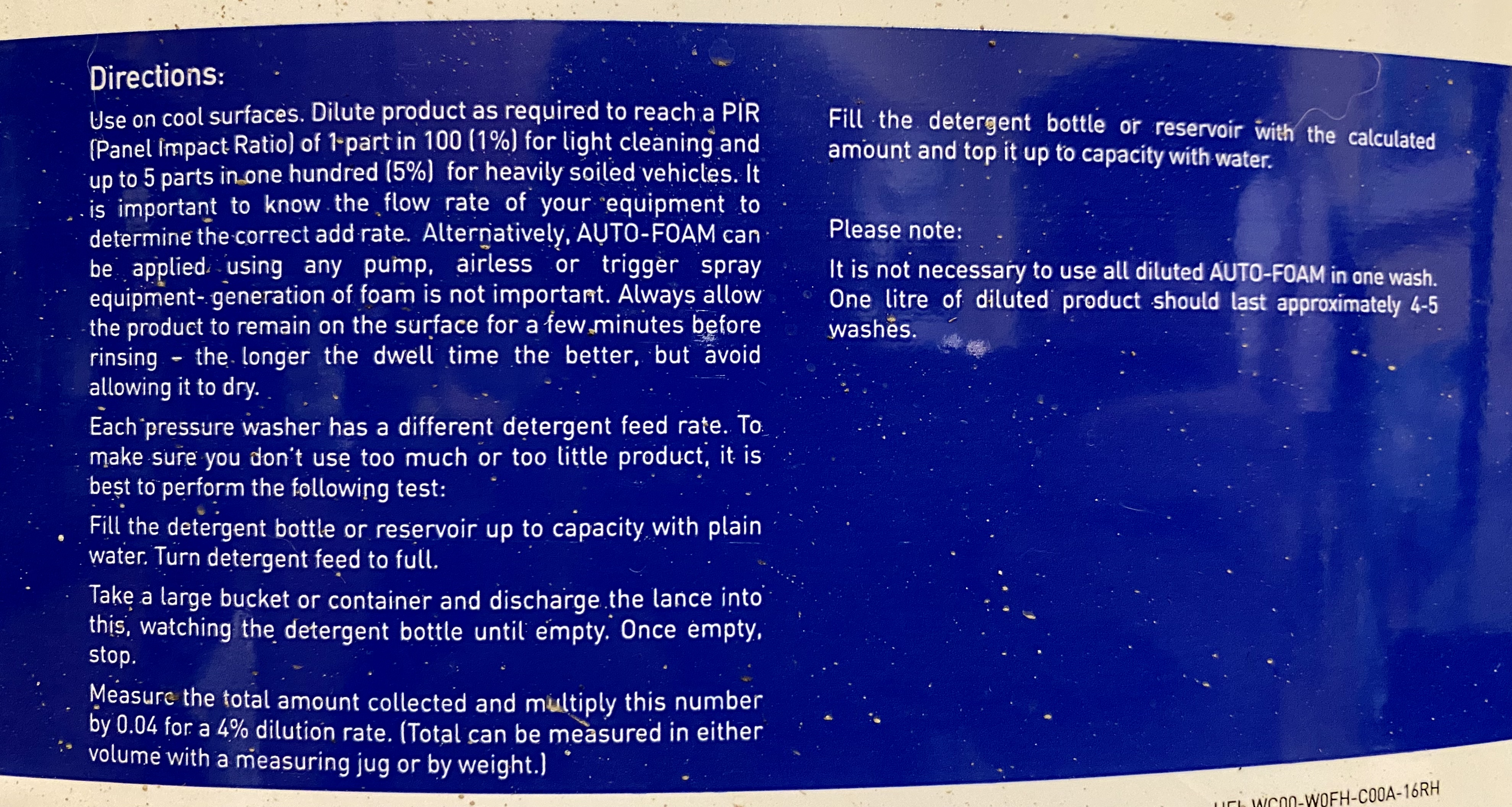 I’ve got a foam lance for the Karcher so can’t speak to the situation with a hand pump. Here’s what’s on the container in case it’s of any use.
