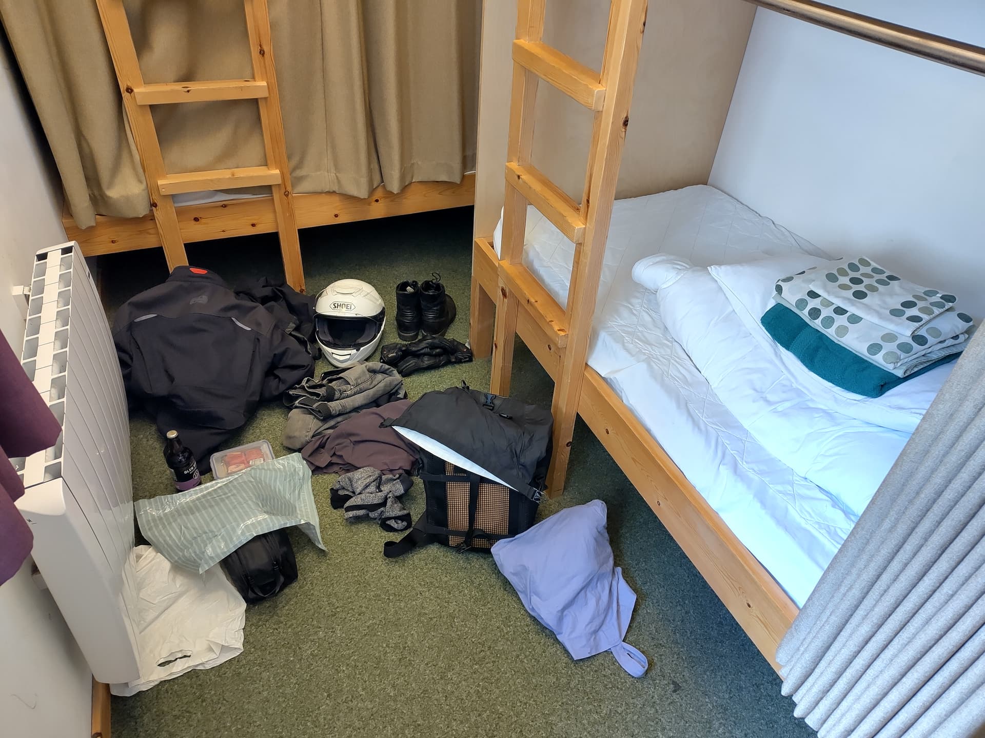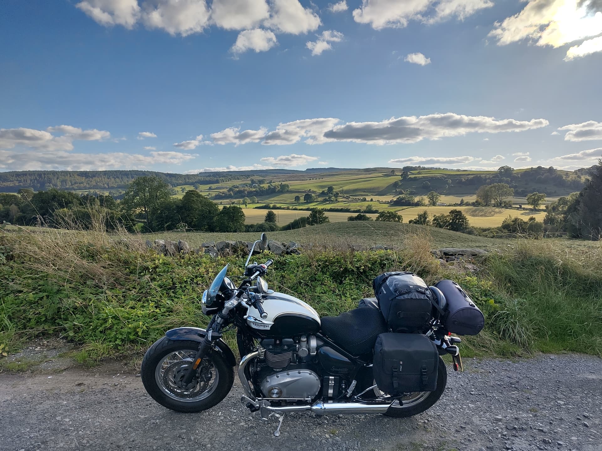 Talking of wind, I had put a flyscreen on the bike for this trip, which enabled me to sit at 70 for the dual carriageway blast up, but I was sure the noise and turbulence was spoiling the past days riding so decided to take it off and put it in panniers, now I had space.