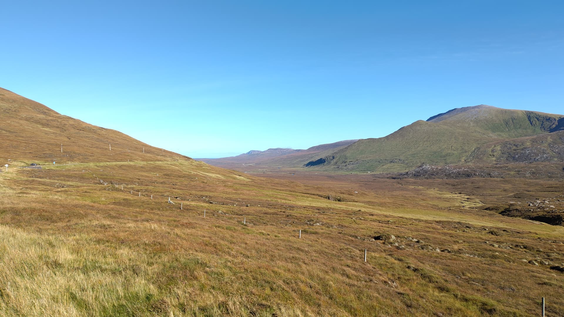 From here I had a relaxing half an hour on virtually empty roads sitting with cruise control on at 60 as I headed north. The road to Durness does go to single track for the last dozen or so miles, and the approach is along and extremely wide valley that feels much different to others.
