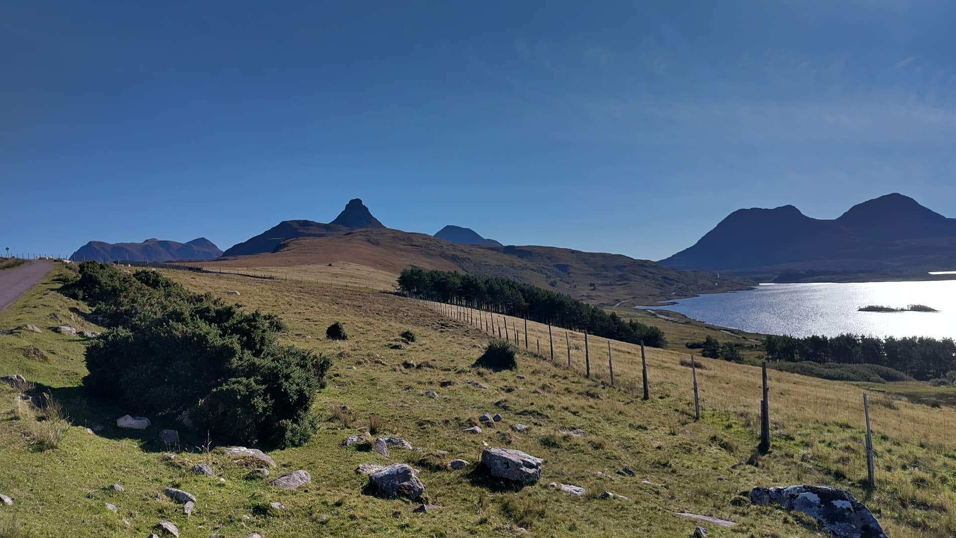 I wasn’t sure then, or later, what pictures to take. Nothing stood out much, just mountains, moors, expansive scrubby bits, lochs and sea, in glorious sunshine