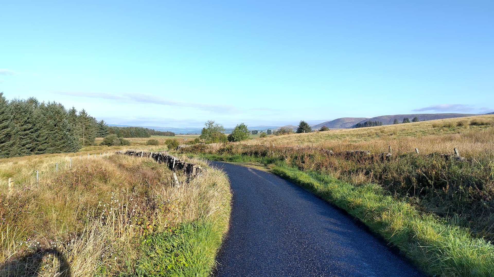 I was heading north to Lochinvar along the single track road going up and down hills not far from the coast, sometimes with little wooded bits.