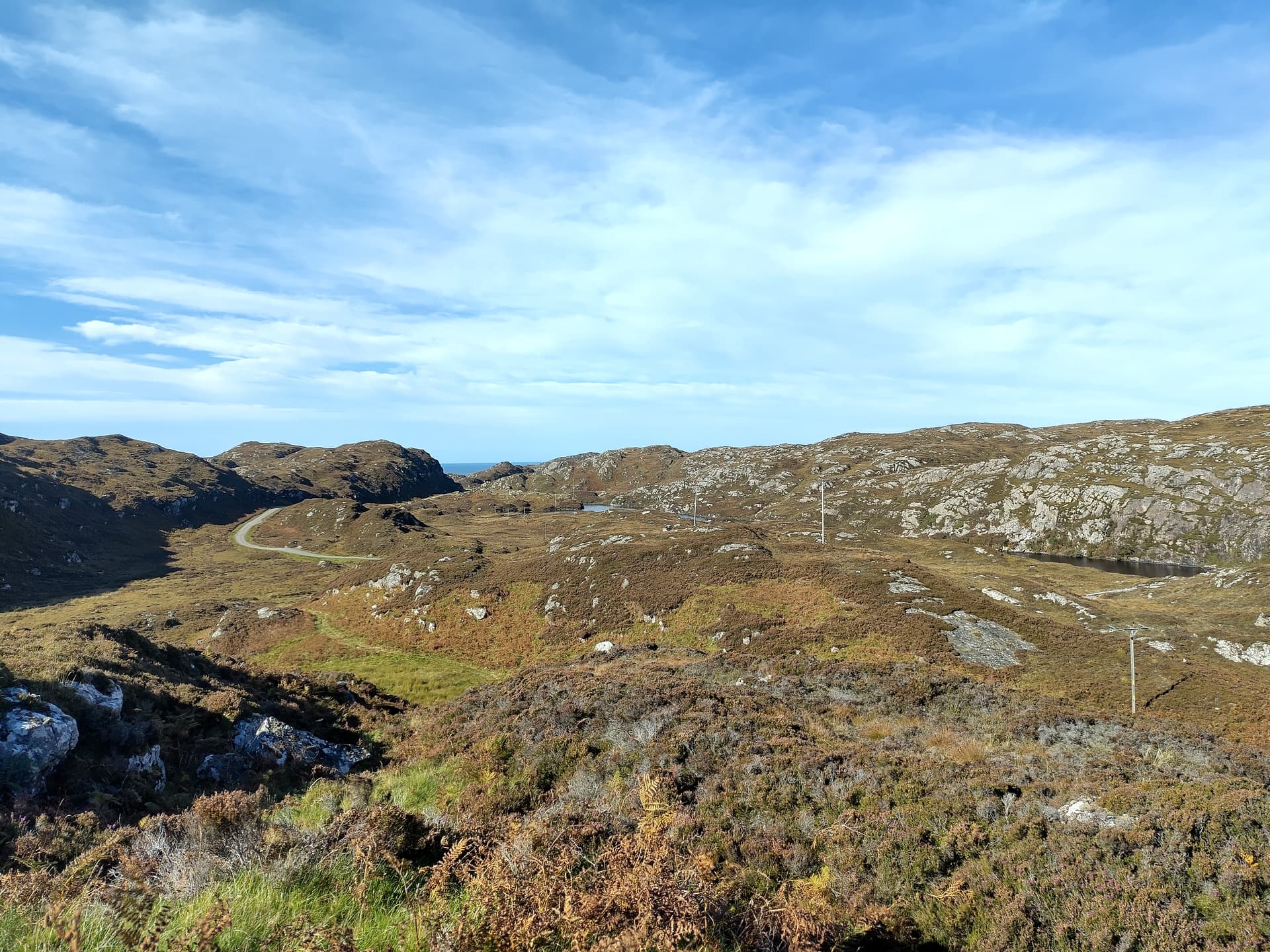 Actually, its probably more across hills, moors and by peaty pools than ‘coastal’. It’s also a long route and with the stream of NC500 traffic coming the other way eventually got a bit tedious with the point and quirt hopping between passing places. Still, I joined most of the other people with their smiles and waves as we all pulled into passing places for each other.