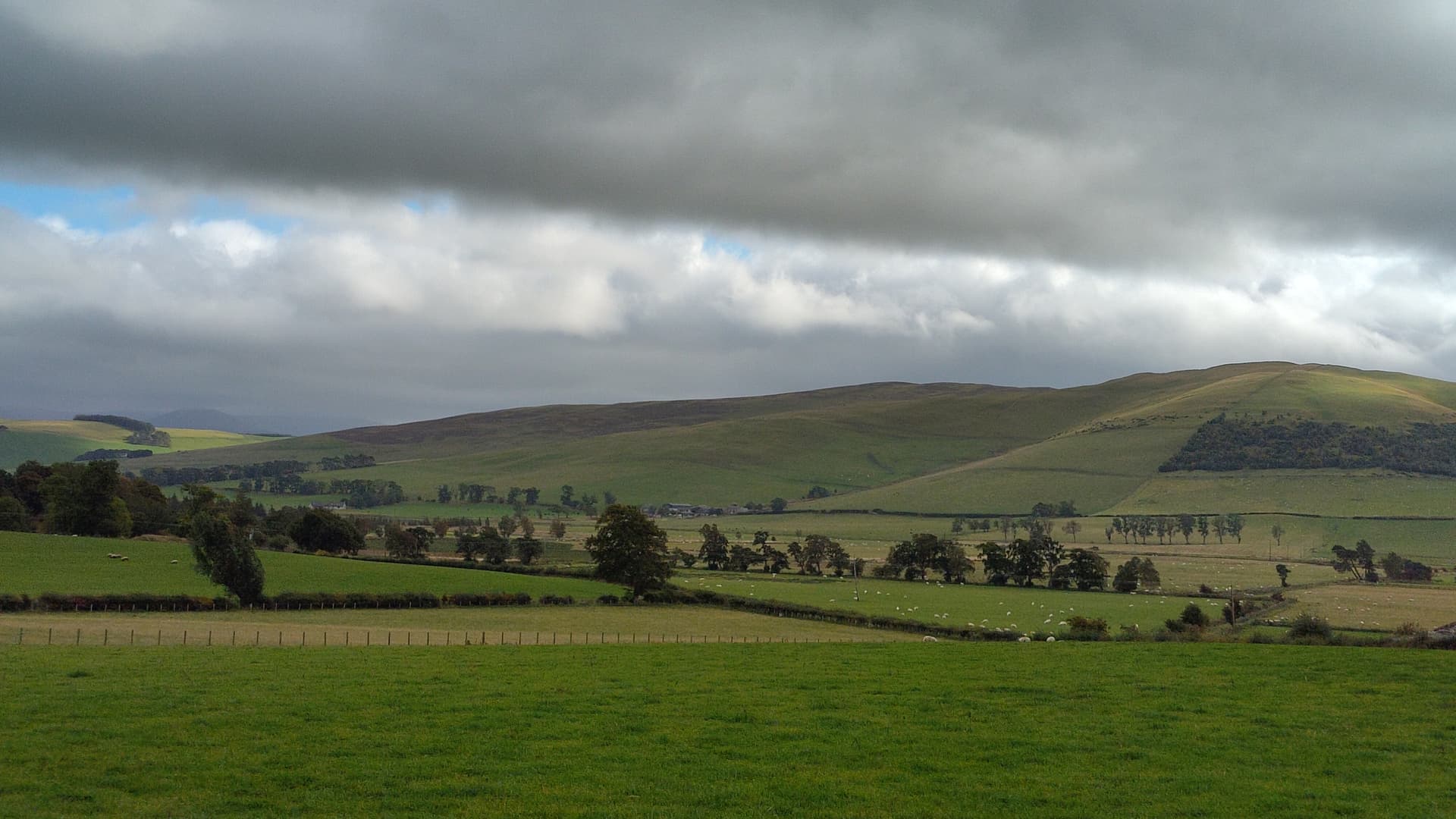 After a bit more motorway I was once again heading cross country on empty fast roads through open countryside. When I got past Biggar the sky gave me hope of some decent weather.