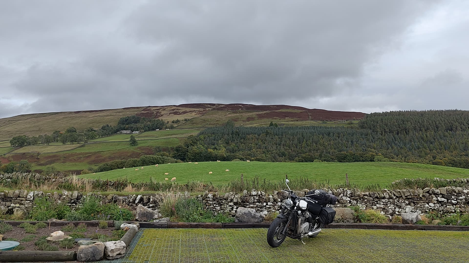 I stayed overnight near Newcastleton and my original plan for the last day was to head west to the Kielder forest and ride through it to Hexham then down the east side of the Pennines. However, the weather forecast was for the north to be wet so decided it wasn’t worth going out my way to get home. So after breakfast, and a bit of dawdling and chatting with B&B host, I set off over the wet hills towards Brampton then proceeded to retrace my route of the first day.