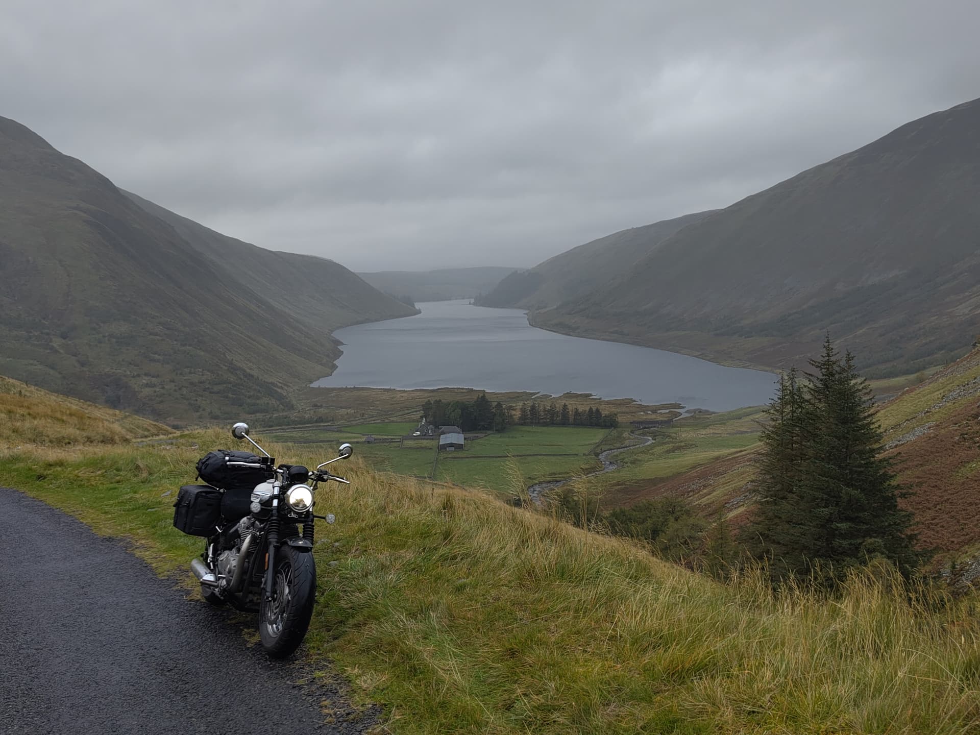 I soon found myself going into drizzly clouds again, this time the sort that also causes visor to mist on inside. It soon got tiresome having to wipe outside of visor every 10 seconds and cracking visor open regularly to clear the inside. Because of the conditions it probably took well over an hour to do the ‘scenic’ route through the hills to get to Langholm.