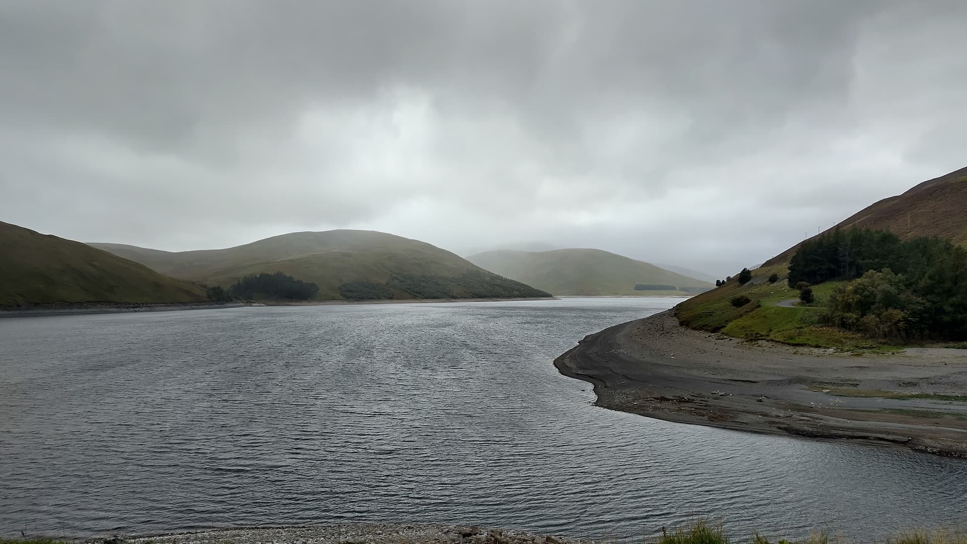 But a short while later when I got to the A701 things were decidedly dark, then drizzly. So when I turned off to go by Talla reservoir I had to put on the waterproof over trousers I’d taken off at The Kelpies.