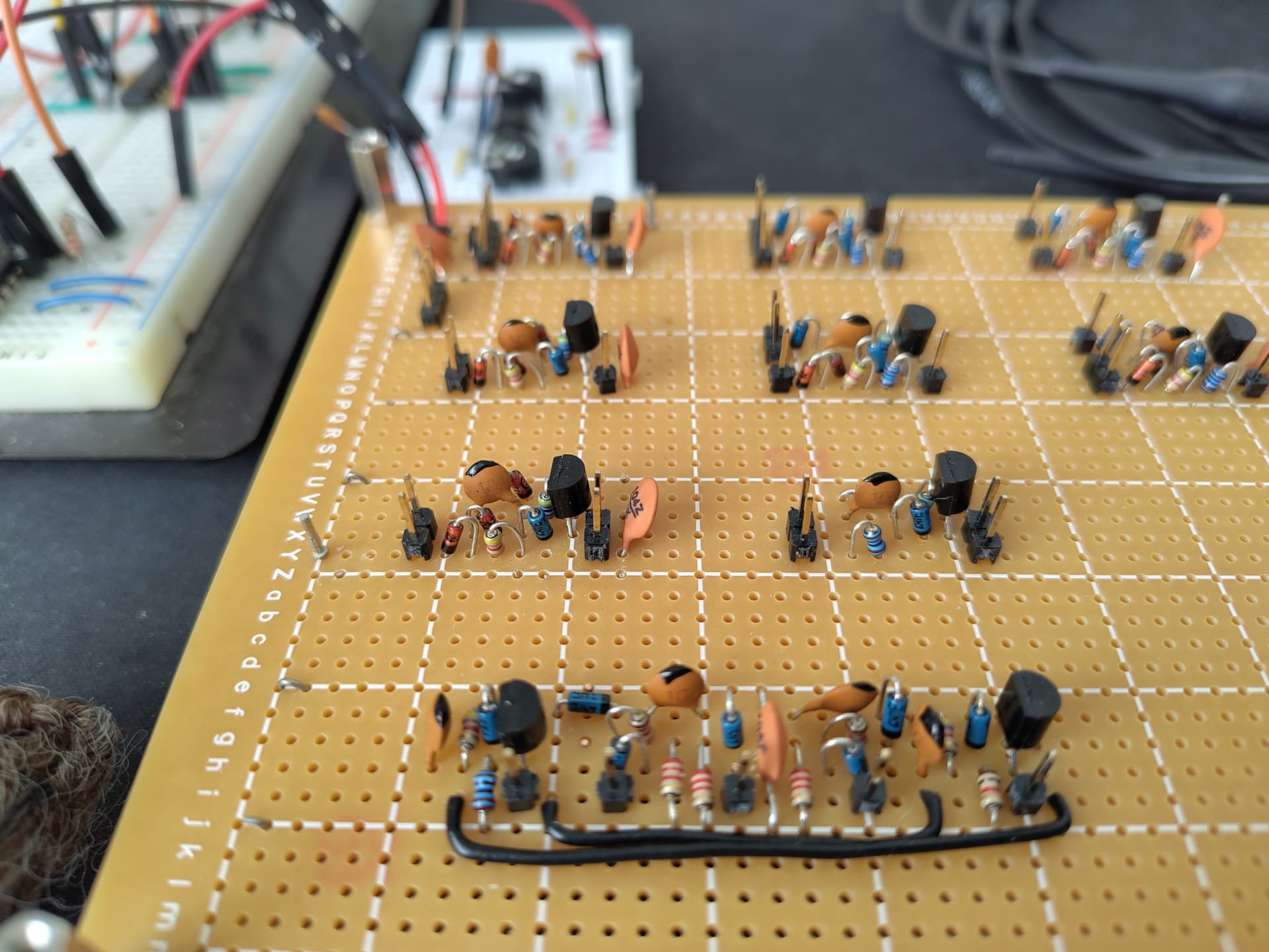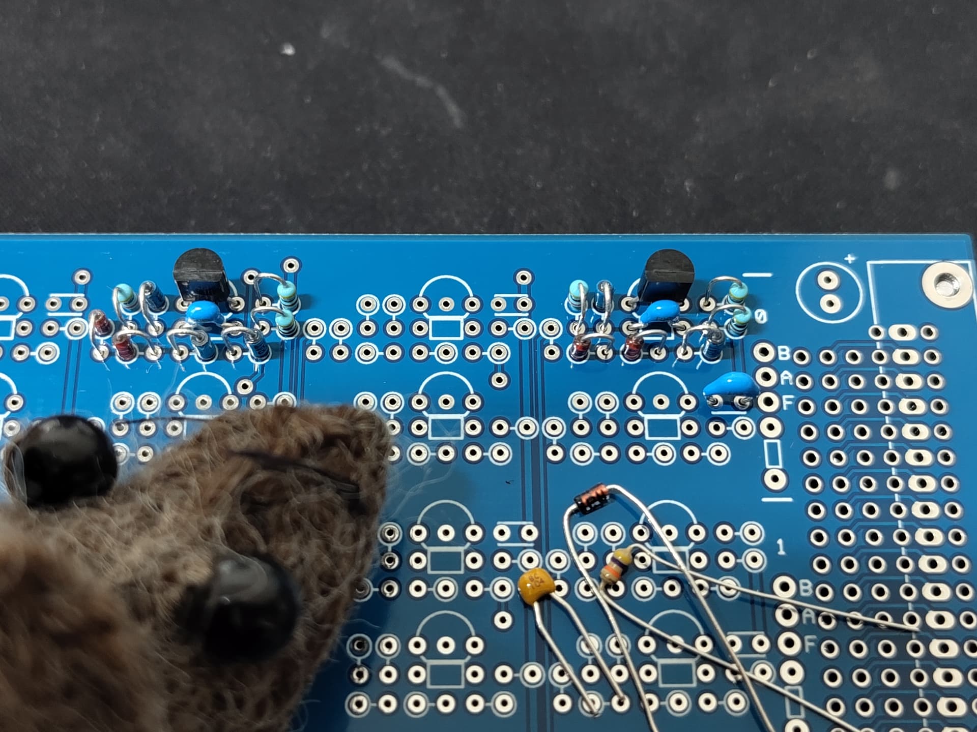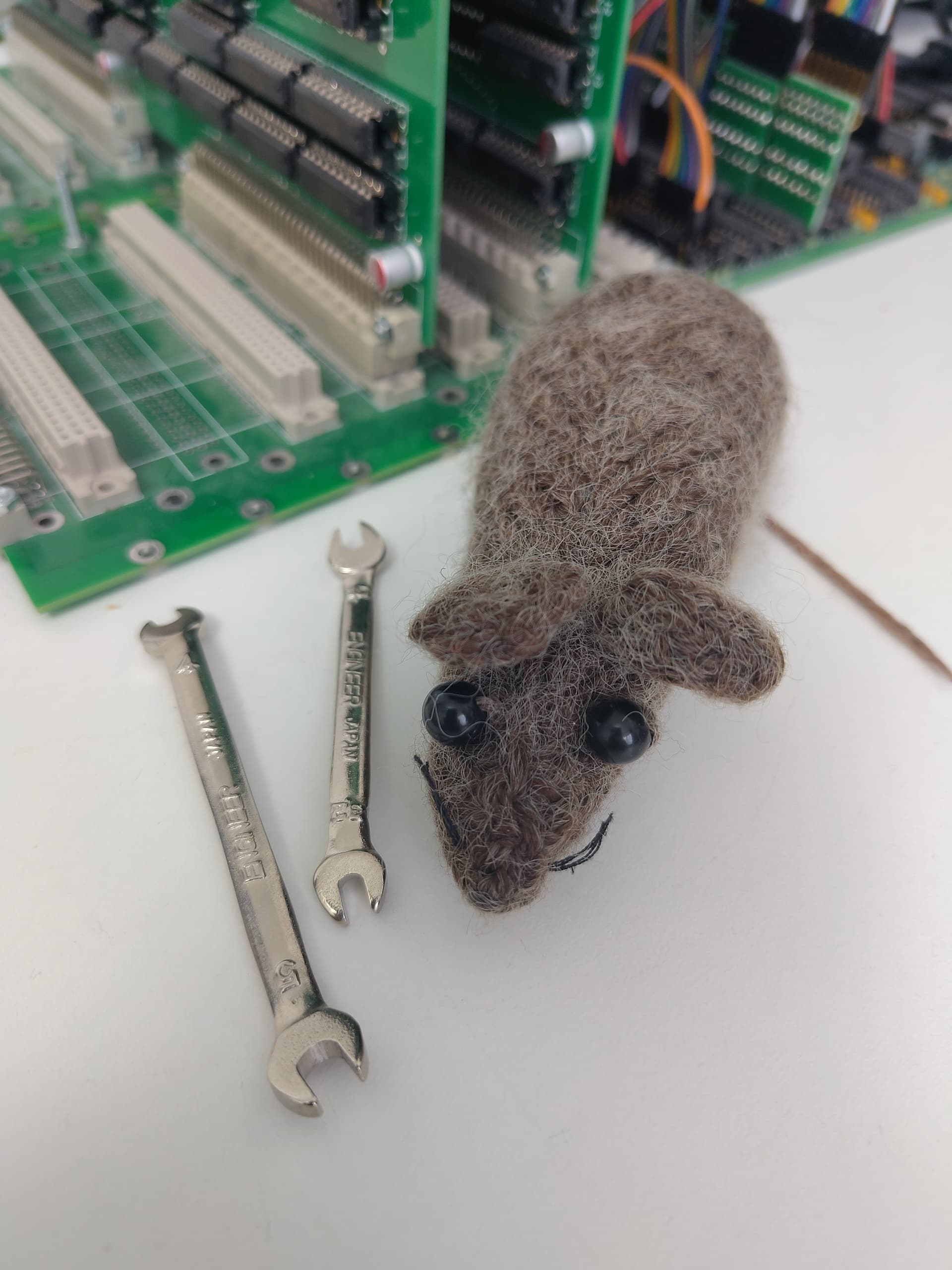 These rivets are to join traces on both sides of a PCB and the tool for inserting them cost several hundred quid, which I begrudged paying. Thinking back I’m remembering a rainy day on a Lake District holiday with Mrs Mouse where she did some knitting or something and I sat at the kitchen table trying to pick up individual rivets with a tweezer, turning them round to insert them, then using a centre punch and gentle hammer tap to fix them. Certainly a sense of achievement when you complete the hundred or more needed for each PCB.