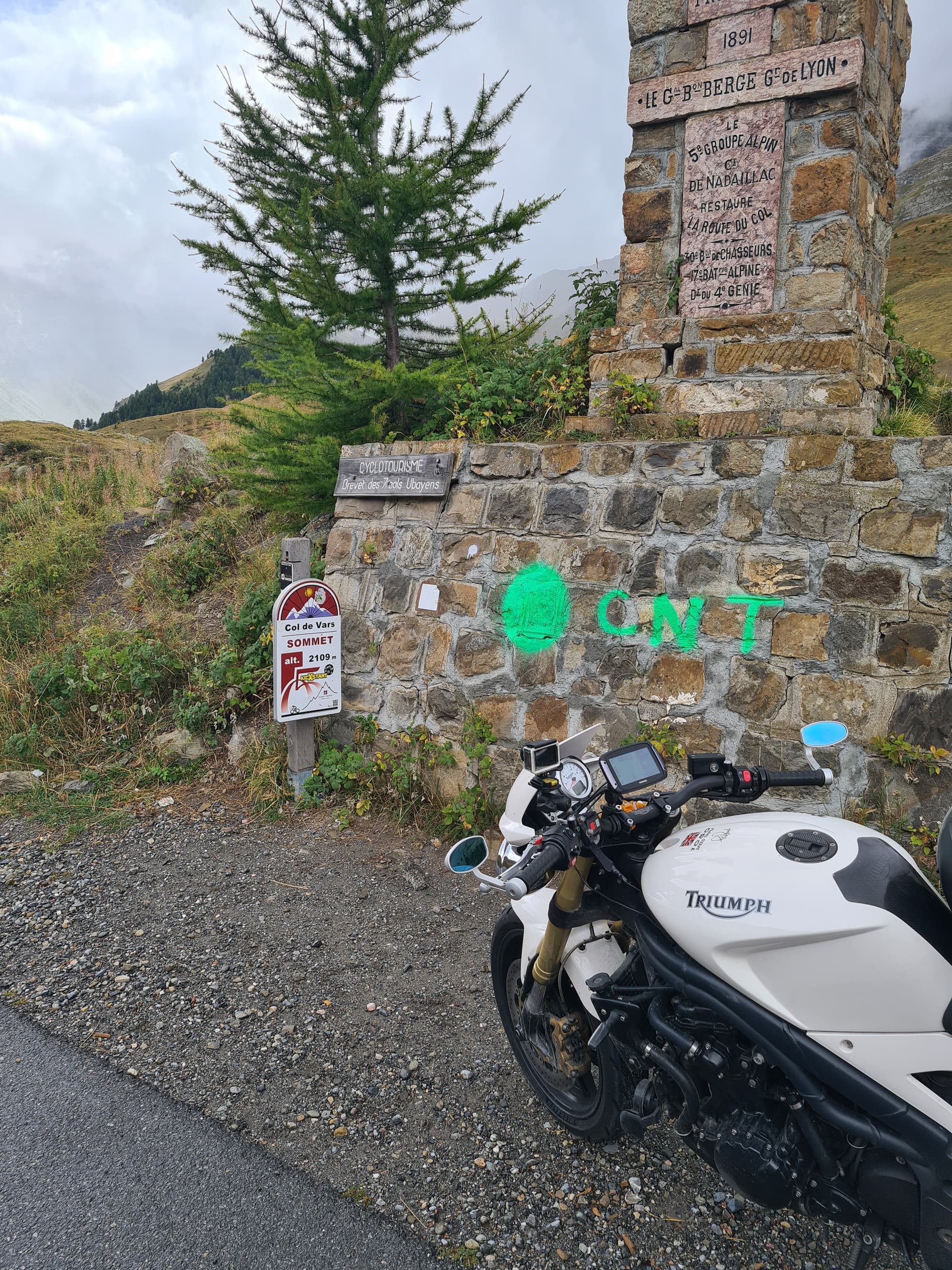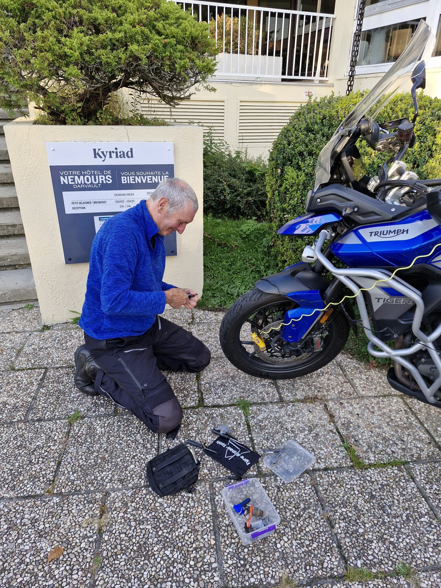 We loved them all, the views and the bends are all so different. Anyway, woke up to a shocking forecast of 3-4 days of heavy rain over the west side of France. We decided to abandon the Vosges section of our trip and head north west. All day riding in rain brought us to 50k south of Paris amd tomorrow we head towards the coast for a couple of days before our ferry home. I got a tpms warning and kept my eye on it until we got to our digs for the night. I found this little bast*rd in the tread. I have used a sticky string to repair and will check pressure in the morning. Anyway, cheers everyone!