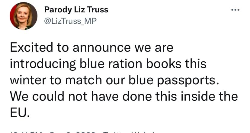 Can’t believe there are still people trying to explain this clusterfuck away. Forget unemployment, forget the BBC, forget Ukraine, Kwasi Kwarteng did this all on his own. He’d barely sat down before the meltdown began. The only reason we’ve seen Sterling recover and things settle is because the Bank of England blew 65 billion buying up debt. You might not have been quite so equanimious if your pension fund had gone tits up, and it was on the cards. They are a shower of shit. And basically all to make wealthy people better off at the expense of the poor bloody infantry. Idealogues, they need the bullet ASAP. ![]()