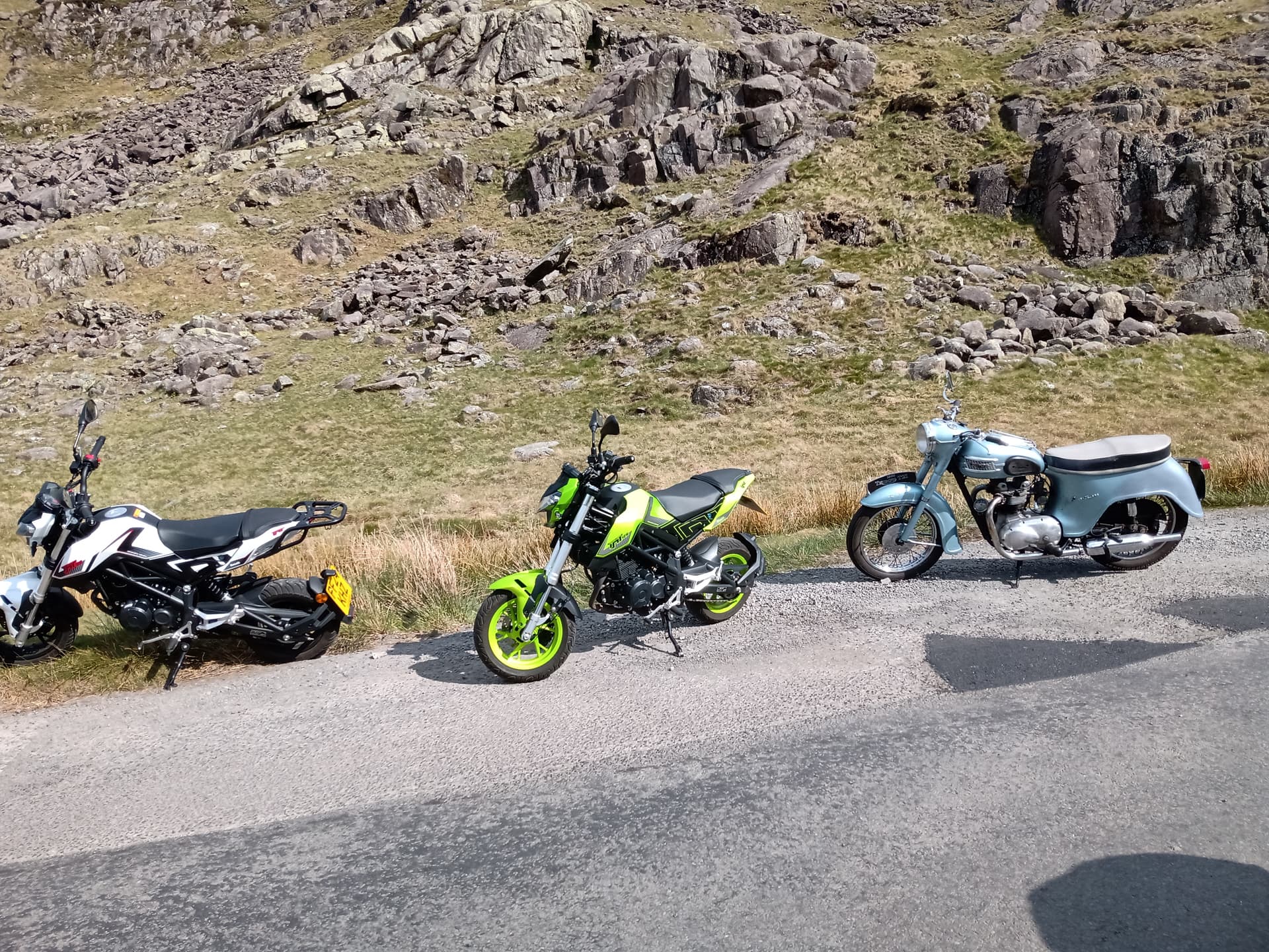 Three of us had a run up the Duddon Valley and over Hardknott Pass. The guy on the T21 wanted a picture of his bike at the top ![]()