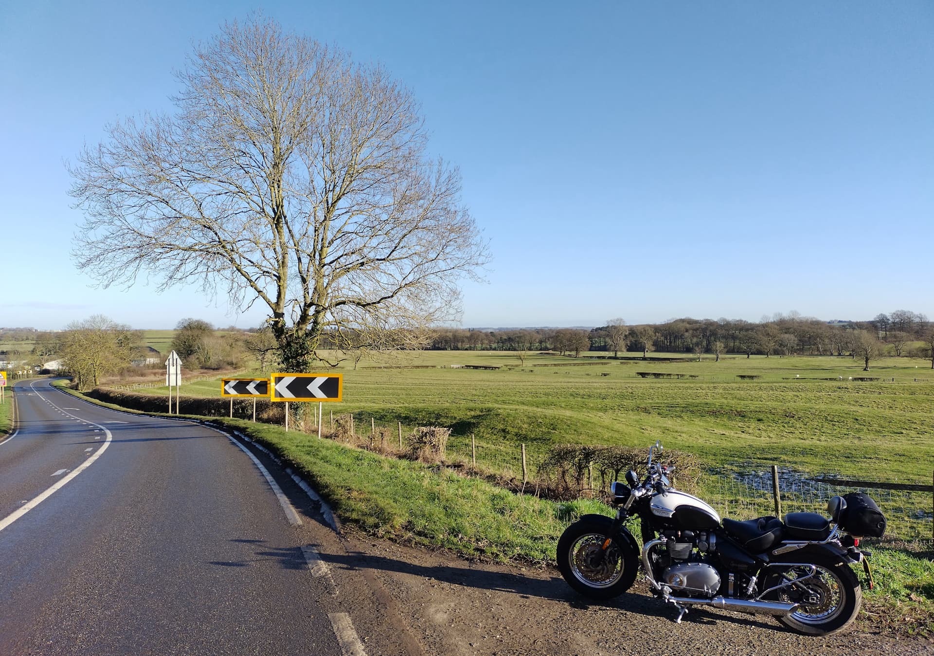 Took my trophy out for another run but misjudged road conditions here, back lanes were slippy with salt/muck in the middle and dry lines where the car tyres go… Wasn’t as much fun as I hoped with that and a squared off rear tyre