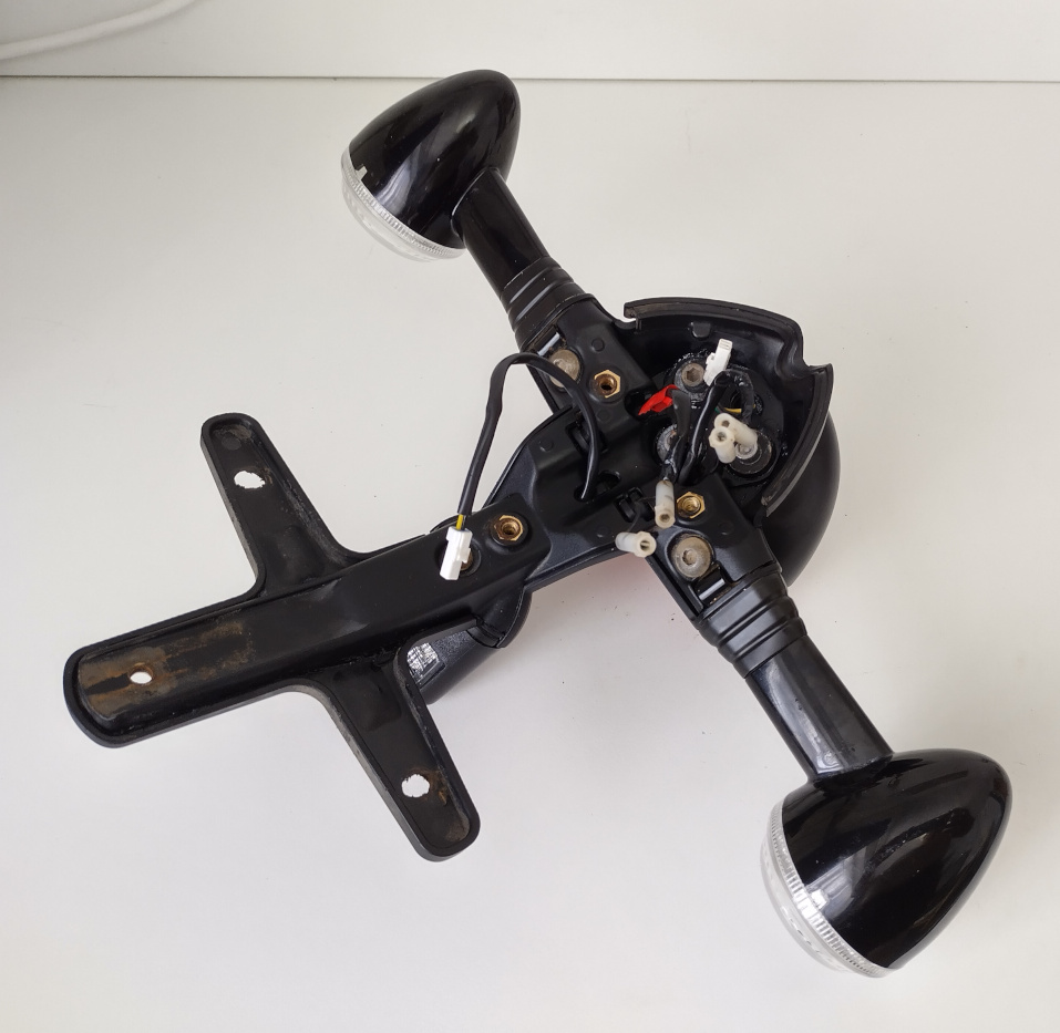 Parts arrived to get rear light unit assembled and working (but not yet on bike). The obvious place for numberplate light wire routing was though a slot in the centre that serves no other purpose, however it was 1mm too small for connector (which I fixed ).