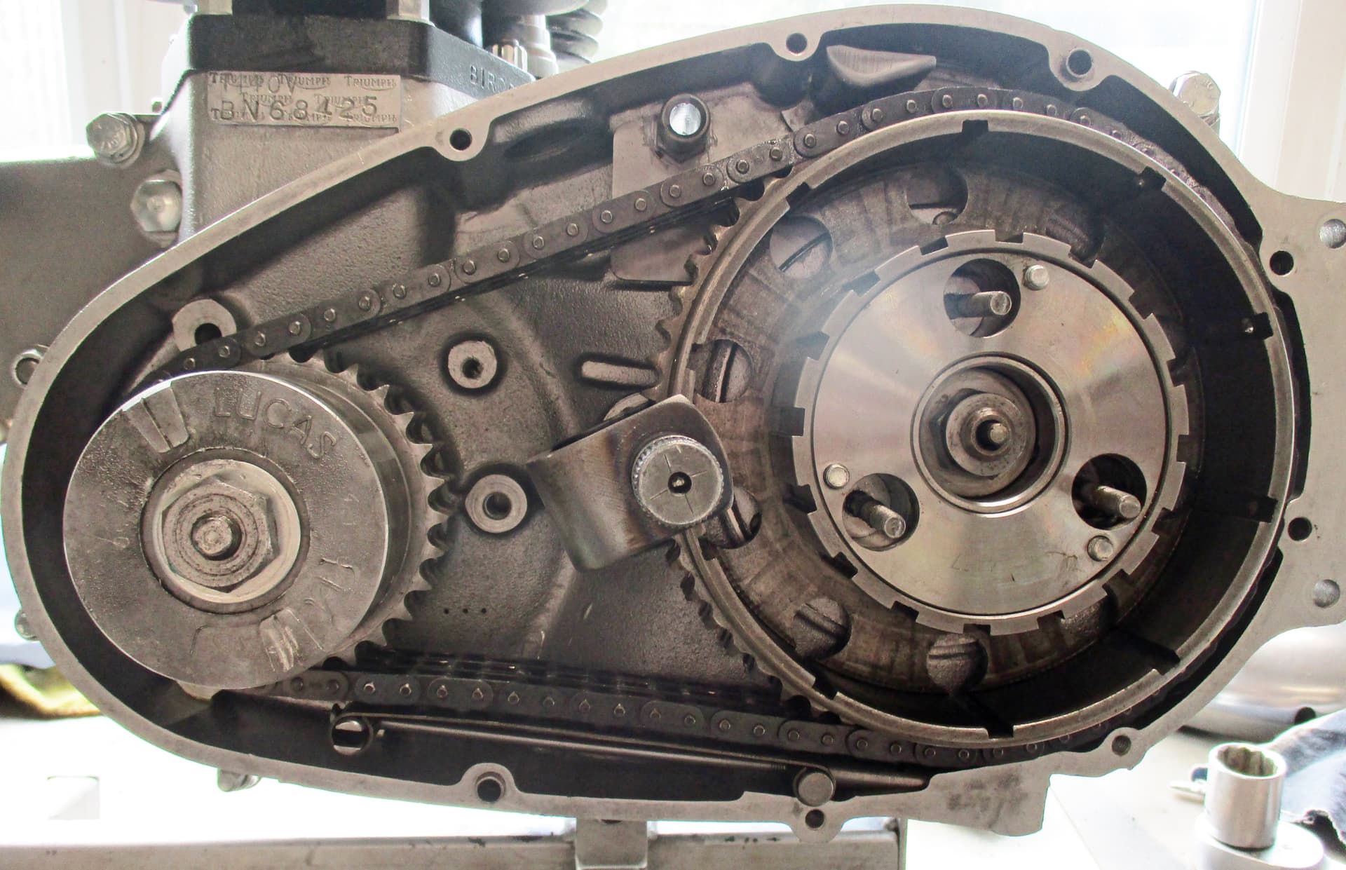 New primary chain, new rubbers, new clutch centre. Just wouldn’t go right, I was at sixes and sevens today…took me half a dozen tries to get it all back in ok. Come on, get a grip that man…should I put that 10 thou shim in or not…tighten up, line up, unbolt, redo FFS, come along!
